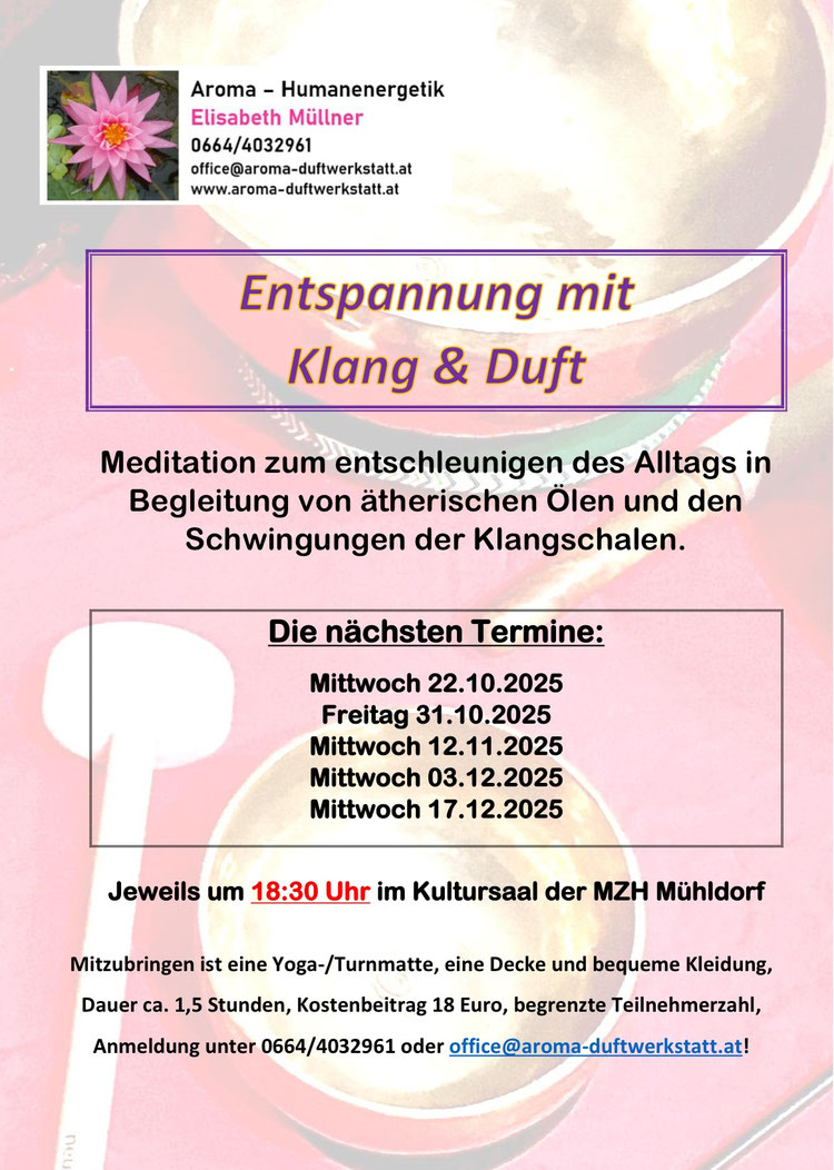 Homepage: www.aroma-duftwerkstatt.at / Facebook: www.facebook.com/aromaberatung.muellner